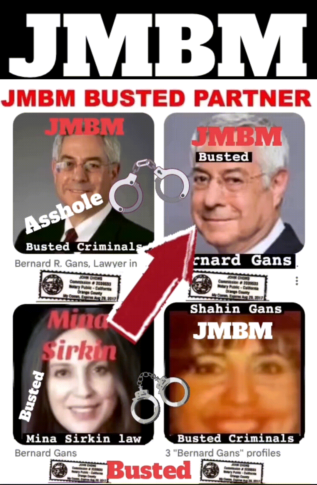 Busted criminal attorneys Jeffer Mangels Butler & Mitchell LLP lawyer Bernard Reginald Gans #57068 Bernard Gans Mina Sirkin law group JMBM killed my mom to get her fortune.